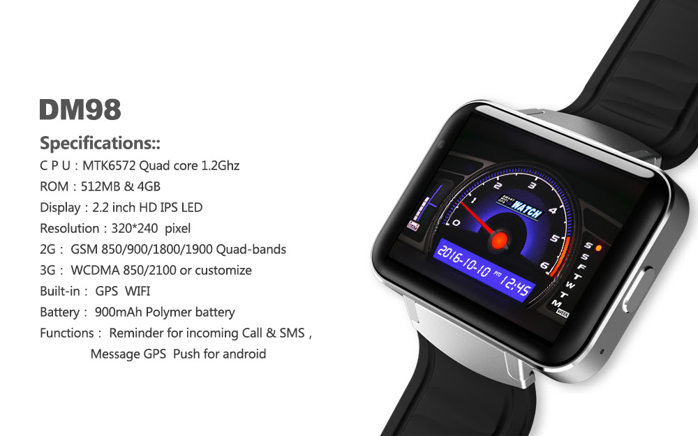 Automatic Enohplx Original Battery Ram 900mah Camera 512mb 5.1 Mtk6572 3g Rom Smartwatch Watches Gps Smart Dm98 Bobbie Trayvon Rating: 2.9 out of 5
